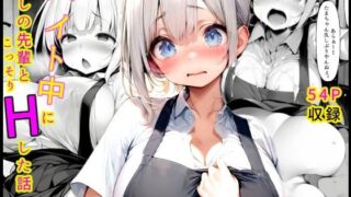 新作販売開始キャンペーン開催決定!!〜◆◆◆◆◆◆◆◆◆◆◆◆◆◆◆◆◆〜公開日から2〜3日後から、なんと!期間限定で90%OFFキャンペーンを実施します!この機会に是非お買い求めください!〜◆◆◆◆◆◆◆◆◆◆◆◆◆◆◆◆◆〜タイトル「バイト中に推しの先輩とこっそりエッチした話 1」あらすじ主人公の島くんは、バイト先の環先輩の事が好き。忙しい時間も過ぎ、空いた時間でお互いの飼っている猫の話から、島くんの家の猫の写真をスマホで見せていると、間違ってエッチな画像を環先輩に見せてしまう…。嫌われたかと思いきや、環先輩は興味津々で…。しつこい環先輩に思わず逆ギレの島くん。無理だと分かりながら相互オナニーを提案するも、なんとか受け入れてしまう環先輩…。流れで、ついに2人はアルバイト中にエッチを始めてしまう…。そんな時に限って色んなお客さんが来店してしまうが、果たして2人はどう対応するのか?そして、無事にセックス出来るのか…!?日常系っぽい非日常でエッチなラブストーリーです。続きは本編で…!【プレイ内容】 接客しながら隠れフェラチオパイズリ乳首舐めおっぱい揉みディープキスおしりフェチ中出し正常位騎乗位接客しながら隠れ立ちバック駅弁エプロン着衣プレイ全裸プレイラブラブセックス【製作方法】プロットを考案し、プロの漫画家も愛用しているCLIP STUDIOを使用して、手描きでキャラデザ・ネーム・下書きを2人体制で作成。そこからStable Diffusionを使用してネームに合わせたAIイラストを生成。コマ割り、吹き出し、効果音や効果線などを手作業で行い、最終段階で必要箇所を加筆修正し完成させています。【ページ構成】・表紙と表紙裏 各1ページ・キャラ紹介 1ページ・漫画本編 46ページ・おまけカラーイラスト 6ページ・奥付と注意書き 各1ページ・裏表紙 1ページ計56ページ注意★本作登場人物は全て20歳以上の設定で作成しました。