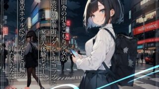ド田舎住みの裏垢女子、引き籠り癖のあるそらちゃんが好きな女性アイドルのグッズを買いに東京遠征!!「東京でこんな激しいおなにーするとは思わなかった・・・。腰ビクビクしてる・・・」Track1 大都市東京の人の多さにハラハラしながらも新幹線や電車に大苦戦。 セクシーな格好の女性やえっちなお店、看板の多さにそらちゃんが立ち向かいます。 苦戦しながらようやく入れたホテルから、家から持参したマイクで実況報告。Track2せっかく渋谷に来たからにはと、繁華街のアダルトショップに潜入体験レポート。なのですが、Track2ではアダルトショップまでの道すがら、マスクにイヤホンマイクを仕込んですれ違う人達にこっそり隠れながら渋谷繁華街を歩きます。後ろから近づいてくるタクシーやラブホテルの安すぎる価格にいちいち驚いちゃう!Track3「種類が多くて選べないよ・・・」いざマイクを付けてアダルトショップに潜入するそらちゃん。多種類のテンガやオナホ、ディルドやローター、ハードなSMグッズやアナルスティックに興味津々。。レベルの高いおもちゃには大仰天? お気に入りのAV女優のグッズもたくさんあり。。。他のお客さんに見つからないように怖がりながらひそひそ声で囁きレポート。 展示されてるおすすめ商品のローター音をみんなに聞かせてくれる場面も?Track4 アダルトショップを出てからホテルに帰るまで再び渋谷を散策。地雷系の女の子や偶然出くわした地下アイドル達のイベントに今作一番のテンション爆上がり? いきなりの地下アイドルの出現にマスクの中で息が上がるそらちゃんですが、イベントの列には並びたくても並べない陰キャ感。。。雑踏で渋谷を感じられます。Track5 本編実演パート 「録音始める前からトイレ行ってなくて・・・。外暑くて水いっぱい飲んじゃったんで・・・大丈夫かな・・・」東京渋谷のホテルで30分以上の汗だくおなにー。先っぽに大きめのローターが付いたスケルトンのディルド〔ヘッドバイブオレガスティックモチモチイカせる〕&無機質な鎖の付いた首輪の開封から始まります。ディルドを奥まで突っ込んだ状態でローターの電源を入れ、すぐに限界が来ちゃいますが、初めて使用するおもちゃの止め方がわからず・・・最終的にはおもちゃの蓋を壊してしまい、指で追加おなにー。弱点集中で開発途中のおもらし潮吹きがマイクに・・・是非お聞きください。※この作品は一部AIを使用しています。