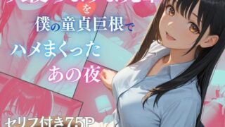■キャラクタープロフィール・名前:諸叙満子 絆 (しょじょまんこ きずな)・イメージ年齢:20代半ば〜後半・性格や特徴:ほとんど男性と関わったことがない陰キャな処女。現実世界で例えるならば、男子校出身で女子に免疫がない陰キャ男子。人の話す時はキョドることが多く、普段から笑い方が変。■あらすじクリスマスイブに買い物をしていたあなたはチャラそうな女性集団にナンパされてしまう。その状況に困っていると挙動不審なお姉さんが助け出してくれた。あなたはお礼をしようと、お姉さんを自分の家に招き手料理を振る舞った。しかしご飯を食べ終わるとお姉さんから逆レ●プされてしまう…。■トラックリスト<8トラック合計66:19>+WAV版同梱 1芋女版【お姉さんに助けられる】プロローグ(05:13) 2芋女版【食事・手コキ・乳首責め・パイズリ】処女お姉さん、頑張る(17:50) 3芋女版【念願のセックス】種付けさせぶっぴょんピストン 中出しもあるよ?(09:57) 4芋女版【私と付き合わない?】エピローグ(02:01) 5喪女版【お姉さんに助けられる】プロローグ(04:56)?喪女版【食事・手コキ・乳首責め・パイズリ】処女お姉さん、頑張る(15:19) 73)喪女版【念願のセックス】種付けさせぶっぴょんピストン 中出しもあるよ?(09:09) 8 4喪女版【私と付き合わない?】エピローグ(01:54)■AI一部使用作品当作品ではAI画像生成ソフトを一部用いて加筆描写編集処理を施してパッケージイラストを製作しております。