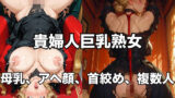 体中に精子が降り注ぎ、快感と興奮に満ちた表情を見せる。乱れた髪と、精子に濡れた肌が官能美を醸し出す。