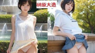 公園の噴水は、夏の暑さを忘れさせる涼しげな音を立てて水を噴き上げていた。水しぶきが陽光に反射し、虹色の輝きを放ちながら周囲を包み込む。その光景は、まるで別世界に迷い込んだかのような錯覚を与える。彼女と私は、そんな噴水のある公園でデートを楽しんでいた。彼女は女子大生らしい爽やかなミニスカート姿で、風が吹くたびにスカートの裾がふわりと舞い上がる。その瞬間、一瞬だけ見える彼女の太ももが、私の心をくすぐった。「ねえ、あそこに座ろうよ」彼女は噴水の近くのベンチを指さしながら、私に微笑みかけた。彼女の笑顔は、まるで噴水の水しぶきのように爽やかで、私の心を軽くした。私たちはベンチに腰を下ろし、噴水の音に耳を傾けた。水が跳ね返る音、風が木々を揺らす音、そして遠くから聞こえる子供たちの笑い声。すべてが調和して、穏やかな時間を紡ぎ出していた。彼女は足を組み、スカートの裾を軽く押さえた。しかし、風は彼女のそんな仕草を意に介さず、再びスカートを舞い上がらせた。その瞬間、私は彼女の白い下着をちらりと目にした。彼女の太ももが露わになり、その滑らかな肌が陽光に照らされて輝いていた。私は思わず視線をそらしたが、彼女の魅惑的な表情が再び私の視線を引いた。「どうしたの?何か変なことでも考えてる?」彼女は首を傾げながら、私を見つめた。彼女の目は好奇心に満ちており、その瞳に映る私はきっと動揺を隠せない表情をしていたに違いない。「いや、何でもないよ。ただ、噴水の音が心地いいなと思って」私はごまかすように答えたが、彼女の鋭い視線は私の嘘を見抜いているようだった。「ふふ、そうなんだ。でも、本当は私のスカートが気になってるんでしょ?」彼女はいたずらっぽく笑いながら、わざと足を組み直した。その動作で、またスカートが舞い上がり、彼女の太ももがさらに露わになった。今度は、彼女の白い下着がはっきりと見えた。私は顔が熱くなるのを感じ、視線を噴水に向けようとしたが、彼女の視線が私を捉えていた。「そんなに気になるなら、もっとよく見せてあげようか?」彼女はそう言いながら、ゆっくりとスカートの裾をめくった。彼女の動作は大胆で、まるで私を誘っているかのようだった。彼女の太ももが完全に露わになり、下着のラインがくっきりと浮かび上がった。私は息を呑み、彼女の行動に驚きながらも、彼女の魅力に惹きつけられていた。「どう?満足?」彼女はいたずらっぽく笑いながら、私を見つめた。彼女の表情は挑発的で、まるで私を試しているかのようだった。私は言葉を失い、ただ彼女を見つめ返すことしかできなかった。彼女の美しさ、大胆さ、そしてその瞬間だけの特別な雰囲気が、私の心を揺さぶった。