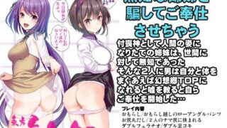 ☆無知な姉妹を 騙してご奉仕 させちゃう●あらすじ付喪神として人間の姿になりたての姉妹は、世間に対して無知であったそんな2人に男は自分と体をまぐあえば幻想郷TOPになれると嘘を教ると自らご奉仕を開始した…●プレイ内容おもらし/おもらし越しのローアングルパンツお尻丸だし/2人のナマ尻に挟まれるダブルフェラチオ/ダブル足コキおしっこの仕方を教えて眺める/騎乗位&クンニ正常位/バック/駅弁/潮吹き/姉妹同時に中出しアイドル姿と事後の比較/騙されに気づく●登場キャラクター九十九弁々(つくもべんべん)九十九八橋(つくもやつはし)※本編は、DL用に絵の加筆&修正、セリフの変更や吹き出しの大きさ等が修正されております。※東方Projectの2次創作作品です。