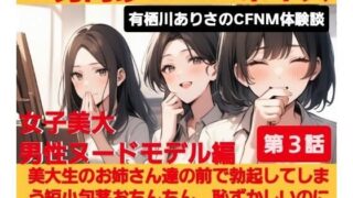 【前回までのあらすじ】チビで軟弱な大学一回生の主人公。彼のチンポは凄くちいさくて包茎で、しかも18歳にもなってまだ陰毛も生えていないおこさまチンポ。ある時そのおこさまチンポの先がオシッコでかぶれてしまう。痛みに耐えかねた彼は恥を忍んでとある病院を訪れる。しかしその病院のスタッフは全員若い女性ばかり。綺麗な女医さんと看護師さんたち、しかもその日は研修生の若い看護師たちが大勢…、更にはなぜか受付の可愛いお姉さんまでが診察室に…。そして、誰にも知られたくなかった恥ずかしいお子様チンポが、美しい女医…ミカコによって診察される。大勢の女性の視線がチンポに集中する中での診察。知的で優しいクールな美人の女医 ミカコの口から「診察」という名目でひたすらその粗チンがいかに恥ずかしいちんぽかと言うことを大勢の女性達に延々と説明さ、サイズを測定記録されてしまう。測定結果はたったの3cm。平均サイズの1/3しかないことや、ちいさすぎて皮が勝手に被ってしまう事を事細かに指摘される屈辱…。更にはミカコの指で包茎の皮を剥かれちいさなピンクの亀頭を剥き出しにされ、大勢の女性達の前で「チンカス」がついている事を指摘されてしまう超恥ずかしい診察まで…。【今回のあらすじは…】 ★大勢の看護師と研修生に囲まれて、チンポに薬を塗る前の「陰部洗浄」。2人の看護師にちいさなチンポをつままれて皮を剥かれ、チンカスのついた亀頭を若い研修生たちにまで見られる。 ★初めて女性に触られて勃起してしまったチンポを必死に手で押さえて隠すが、無理矢理手を離されて勃起してることがバレて笑われてしまう。 ★美人の女医ミカコにチンポを摘ままれて薬を塗られるとその刺激に我慢出来ず…、大勢の女性が見ている診察中にまさかの射精! ★大勢の女性に見られて嘲笑されながら、涙目で精子まみれのチンポを拭く惨めな男子。 ★本編の前後には、出演声優でS嬢の三木谷美穂さんによるCFNMトークの特典ボイス付き。短小包茎のチンポを見て嘲笑しながら言葉責めをしてくれます! ※軟弱で弱い男子が大勢の女の子にとことん辱しめられるCFNMストーリー。女の子が脱ぐこともなく、ひたすら粗末なお子様チンポと軟弱で情けない姿を嘲笑う…、CFNM=「着衣の女性たちと全裸の男子」というシチュエーションに特化した内容です。 ※尚、本作品のイラストはAIで製作しています。